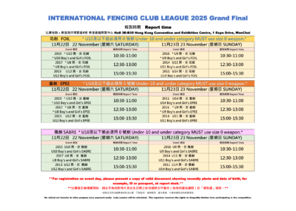U14可使用0至5號劍作賽。U14 category can use size 0-5 weapon.